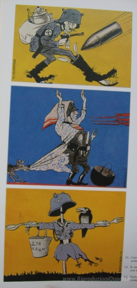 Ti offriamo una riproduzione artigianale su tela dell'opera famosa 'Greedy nemici stanno cercando' di Kukryniksy, dal Museo delle Riproduzioni.