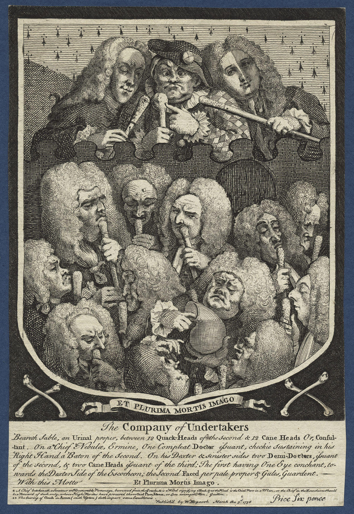 Ti offriamo una riproduzione artigianale su tela dell'opera famosa 'La Compagnia di Onoranze funebri' di William Hogarth, dal Museo delle Riproduzioni.