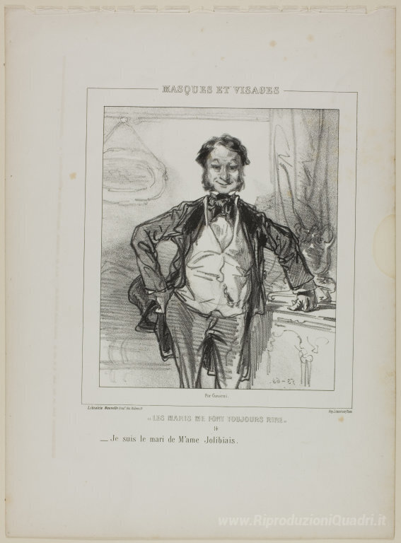 Ti offriamo una riproduzione artigianale su tela dell'opera famosa 'Les maris me fonte toujours rire: Je suis le mari de M'ame Jolib' di Paul Gavarni, dal Museo delle Riproduzioni.