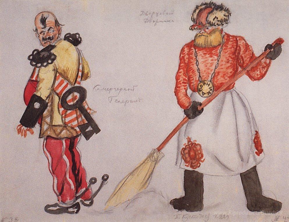 Ti offriamo una riproduzione artigianale su tela dell'opera famosa 'Porter Generale e il palazzo' di Boris Kustodiev, dal Museo delle Riproduzioni.