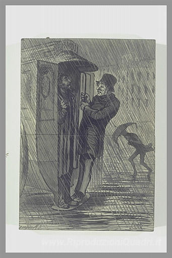 Ti offriamo una riproduzione artigianale su tela dell'opera famosa 'Street Scene. Due personaggi nel retro di un Car Service' di Honore Daumier, dal Museo delle Riproduzioni.