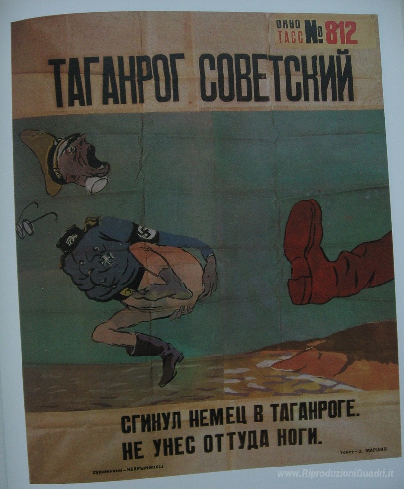 Ti offriamo una riproduzione artigianale su tela dell'opera famosa 'Taganrog è di nuovo sovietica (La Finestra TASS № 812)' di Kukryniksy, dal Museo delle Riproduzioni.