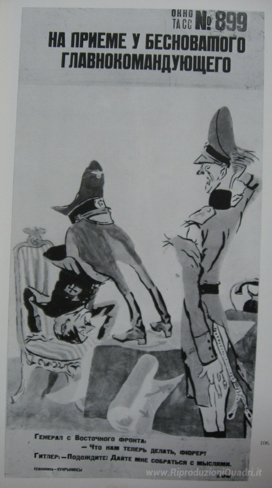 Ti offriamo una riproduzione artigianale su tela dell'opera famosa 'Un ricevimento proposta dal comandante in capo posseduto (La Fin' di Kukryniksy, dal Museo delle Riproduzioni.