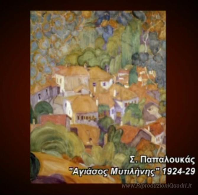 Ti offriamo una riproduzione artigianale su tela dell'opera famosa 'Agiasos Mutilhnhs' di Spyros Papaloukas, dal Museo delle Riproduzioni.
