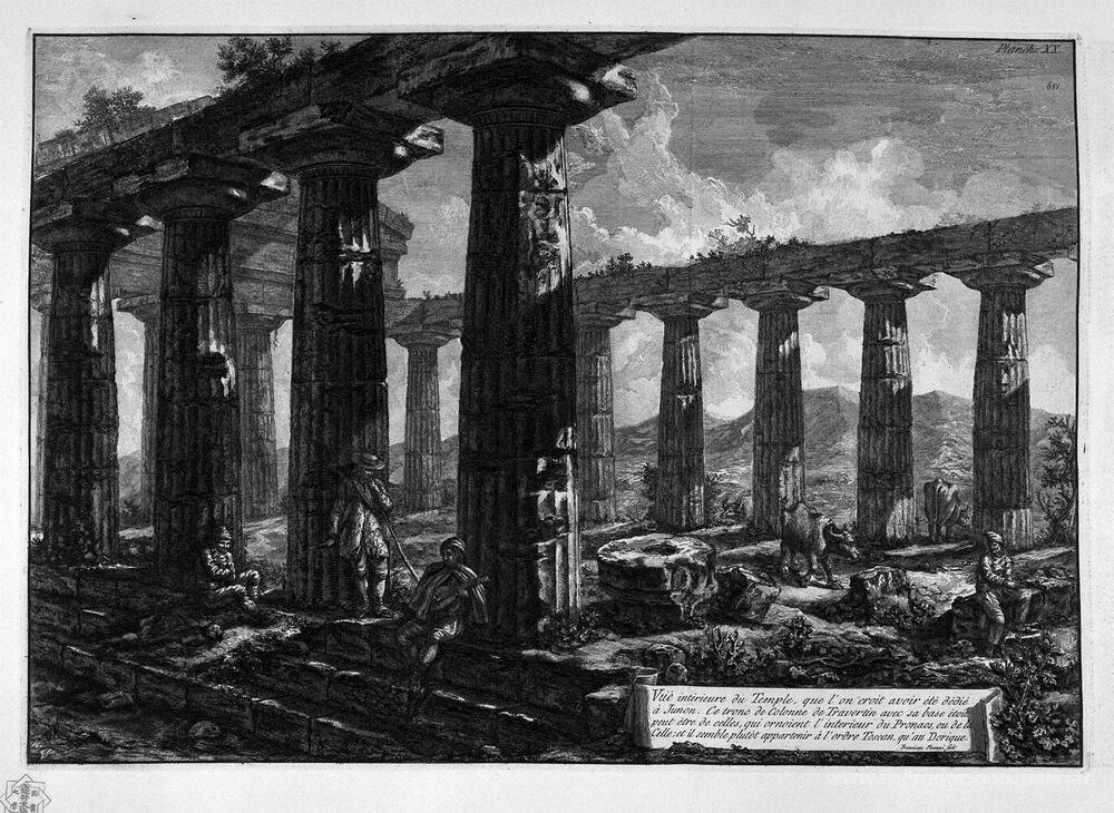 Ti offriamo una riproduzione artigianale su tela dell'opera famosa 'All'interno del Tempio' di Giovanni Battista Piranesi, dal Museo delle Riproduzioni.