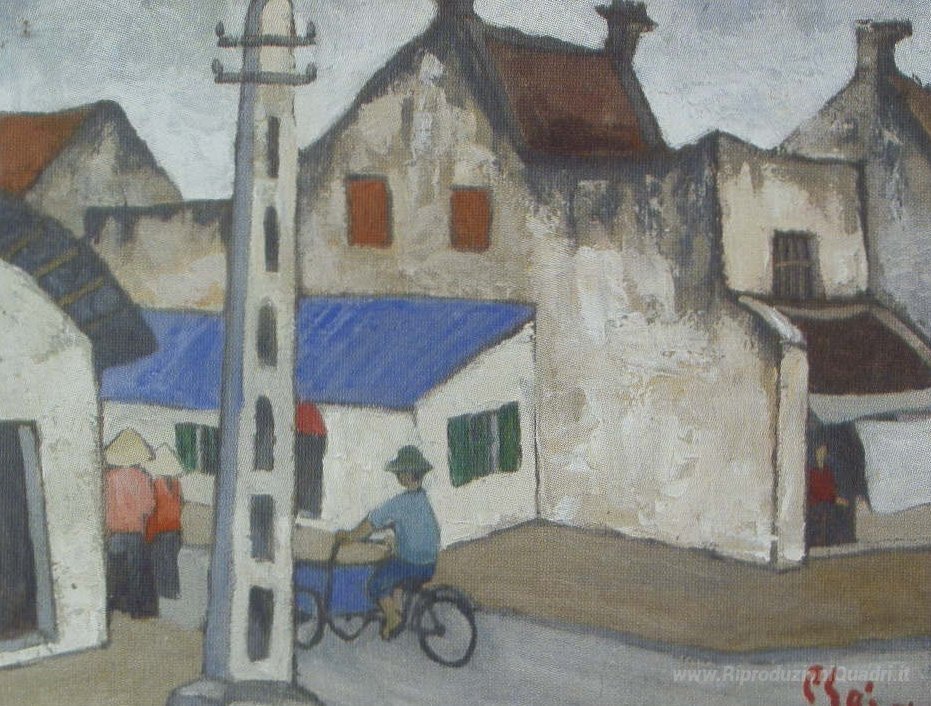 Ti offriamo una riproduzione artigianale su tela dell'opera famosa '(Ancient Hanoi Street)' di Bui Xuan Phai, dal Museo delle Riproduzioni.