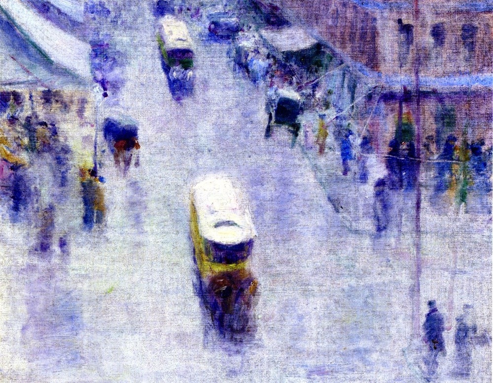 Ti offriamo una riproduzione artigianale su tela dell'opera famosa 'Angolo della strada' di Robert Henri, dal Museo delle Riproduzioni.