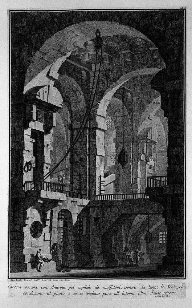 Ti offriamo una riproduzione artigianale su tela dell'opera famosa 'Antenna prigione scuro' di Giovanni Battista Piranesi, dal Museo delle Riproduzioni.