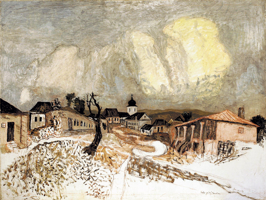 Ti offriamo una riproduzione artigianale su tela dell'opera famosa 'Antico Paesaggio rumeno' di Horia Bernea, dal Museo delle Riproduzioni.