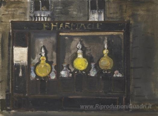 Ti offriamo una riproduzione artigianale su tela dell'opera famosa 'Apotheke a Parigi' di Varlin, dal Museo delle Riproduzioni.