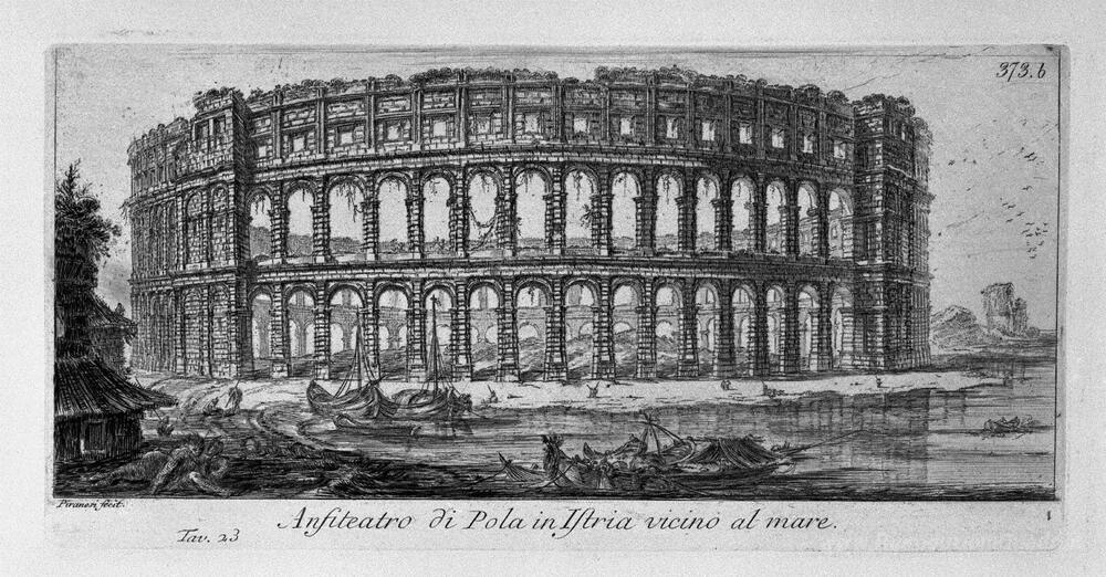 Ti offriamo una riproduzione artigianale su tela dell'opera famosa 'Arco di Druso e la porta di San Sebastiano a Roma' di Giovanni Battista Piranesi, dal Museo delle Riproduzioni.