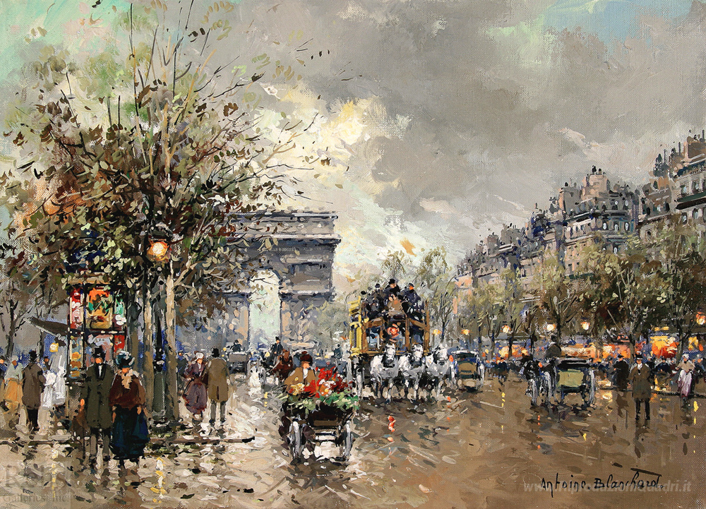 Ti offriamo una riproduzione artigianale su tela dell'opera famosa 'Arco di Trionfo' di Antoine Blanchard, dal Museo delle Riproduzioni.