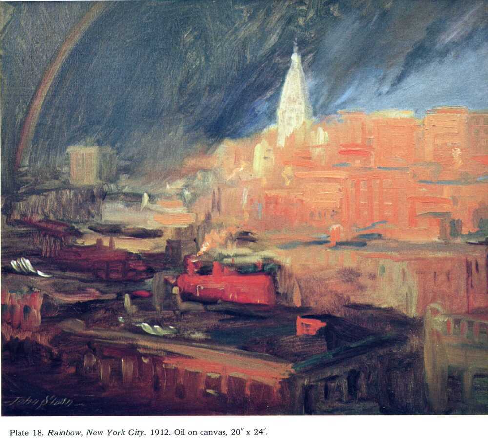 Ti offriamo una riproduzione artigianale su tela dell'opera famosa 'Arcobaleno, New York City' di John French Sloan, dal Museo delle Riproduzioni.