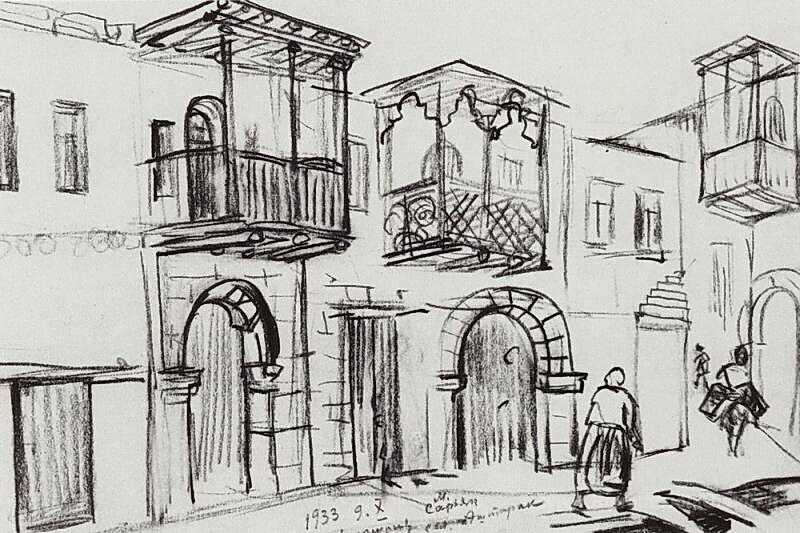 Ti offriamo una riproduzione artigianale su tela dell'opera famosa 'Ashtarak' di Martiros Saryan, dal Museo delle Riproduzioni.
