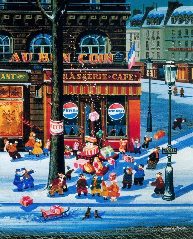 Ti offriamo una riproduzione artigianale su tela dell'opera famosa 'Au Bon Coin' di Hiro Yamagata, dal Museo delle Riproduzioni.