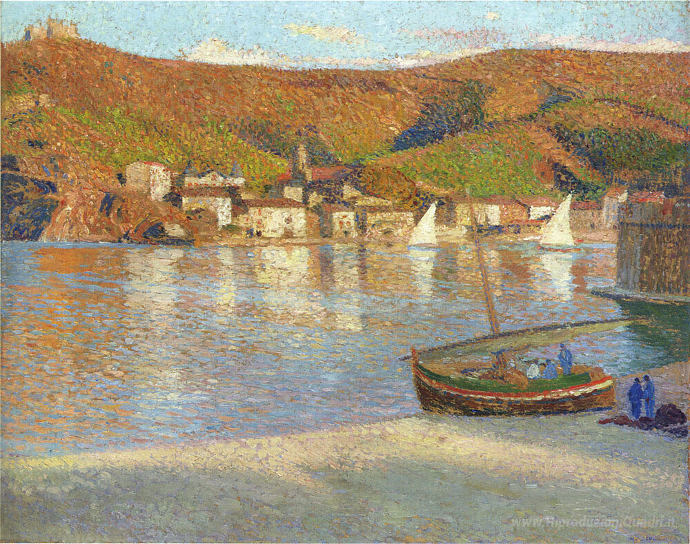 Ti offriamo una riproduzione artigianale su tela dell'opera famosa 'Barche a vela nel porto' di Henri Martin, dal Museo delle Riproduzioni.