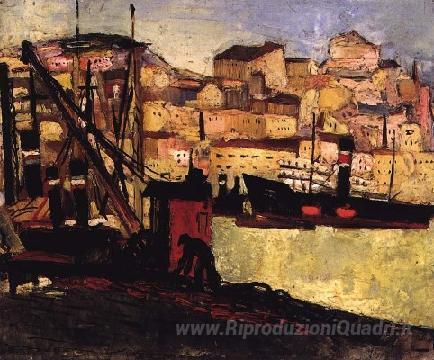 Ti offriamo una riproduzione artigianale su tela dell'opera famosa 'Barcos no Rio' di Carlos Botelho, dal Museo delle Riproduzioni.