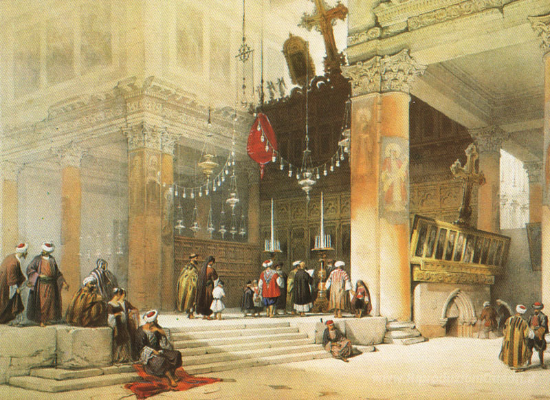 Ti offriamo una riproduzione artigianale su tela dell'opera famosa 'Betlemme. Santuario della Natività' di David Roberts, dal Museo delle Riproduzioni.