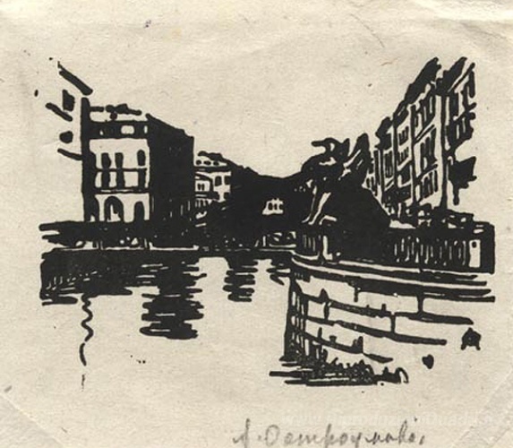 Ti offriamo una riproduzione artigianale su tela dell'opera famosa 'Bridge con grifoni' di Anna Ostroumova-Lebedeva, dal Museo delle Riproduzioni.