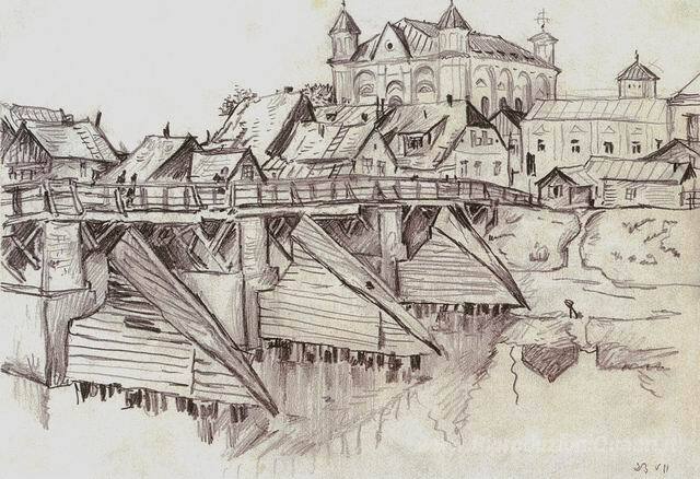 Ti offriamo una riproduzione artigianale su tela dell'opera famosa 'Bridge in K?dainiai' di Mstislav Dobuzhinsky, dal Museo delle Riproduzioni.