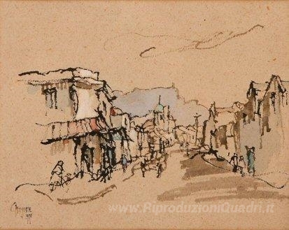 Ti offriamo una riproduzione artigianale su tela dell'opera famosa 'Cape Street Scene' di Gregoire Boonzaier, dal Museo delle Riproduzioni.