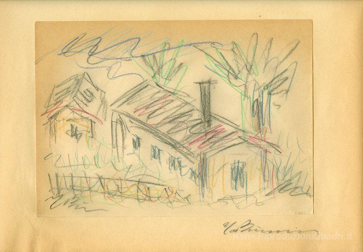 Ti offriamo una riproduzione artigianale su tela dell'opera famosa 'Casa in campagna' di George Bouzianis, dal Museo delle Riproduzioni.