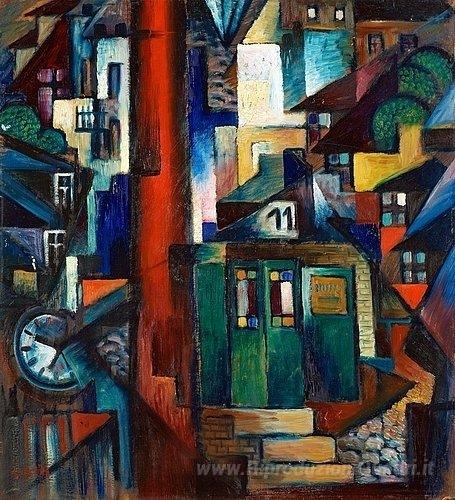 Ti offriamo una riproduzione artigianale su tela dell'opera famosa 'Casa in Noden, Lund' di Gosta Adrian-Nilsson, dal Museo delle Riproduzioni.