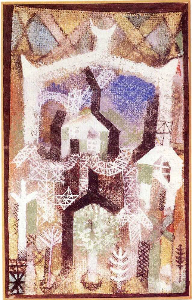 Ti offriamo una riproduzione artigianale su tela dell'opera famosa 'Case estive' di Paul Klee, dal Museo delle Riproduzioni.