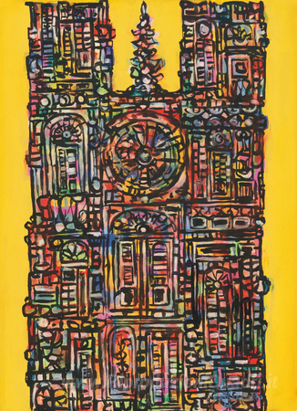 Ti offriamo una riproduzione artigianale su tela dell'opera famosa 'Cattedrale di Giallo' di Rene Portocarrero, dal Museo delle Riproduzioni.