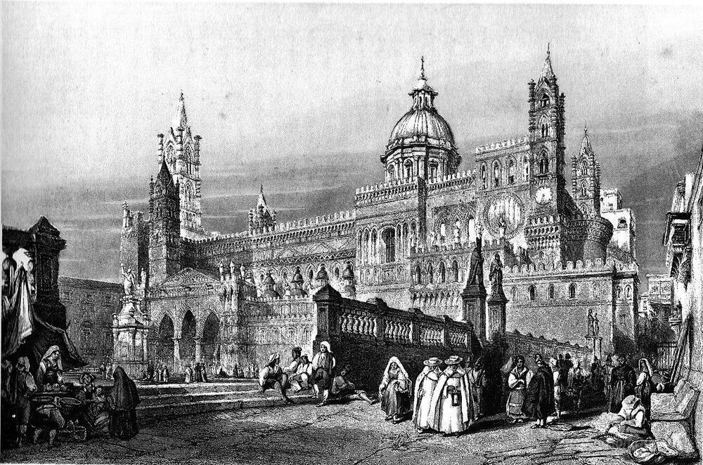 Ti offriamo una riproduzione artigianale su tela dell'opera famosa 'Cattedrale di Palermo, disegno di Leitch, incisione da JH Le Keu' di William Leighton Leitch, dal Museo delle Riproduzioni.