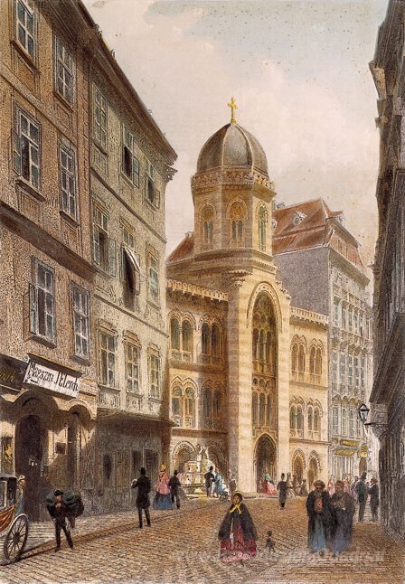 Ti offriamo una riproduzione artigianale su tela dell'opera famosa 'Chiesa della Santissima Trinità greca, Vienna' di Rudolf von Alt, dal Museo delle Riproduzioni.