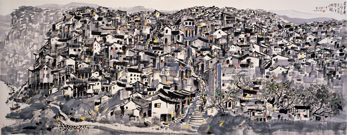 Ti offriamo una riproduzione artigianale su tela dell'opera famosa 'Chongqing della Old Times' di Wu Guanzhong, dal Museo delle Riproduzioni.