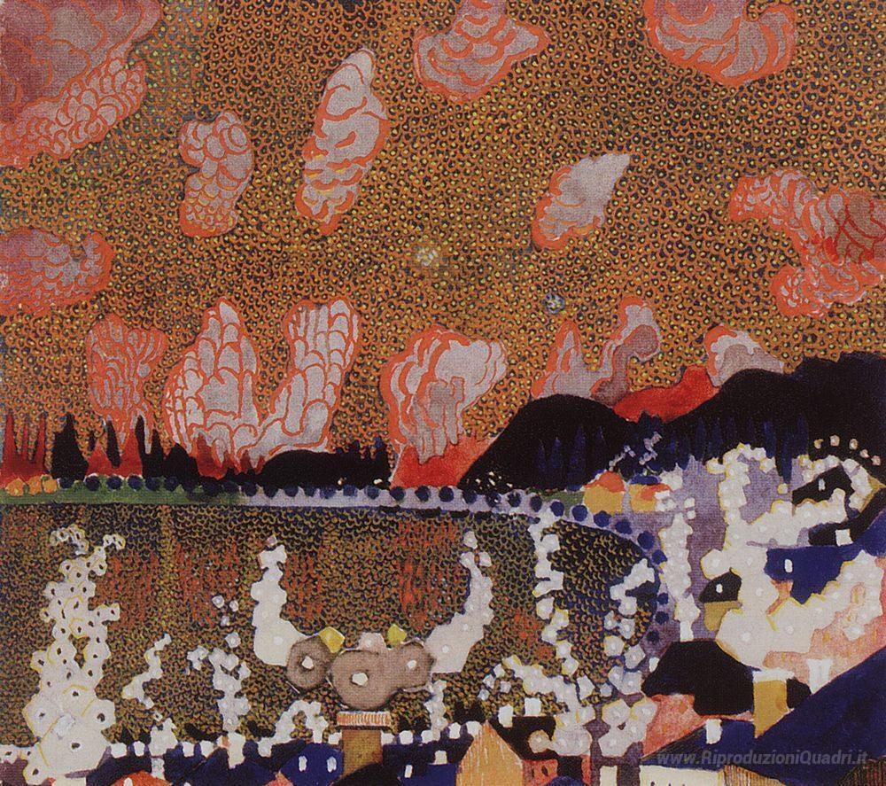 Ti offriamo una riproduzione artigianale su tela dell'opera famosa 'Cittadina' di Kazimir Malevich, dal Museo delle Riproduzioni.