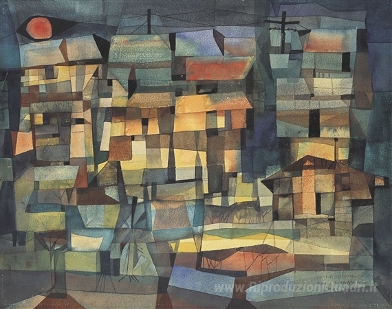 Ti offriamo una riproduzione artigianale su tela dell'opera famosa 'Comunità' di Vicente Manansala, dal Museo delle Riproduzioni.