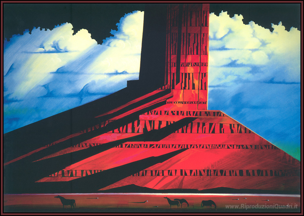 Ti offriamo una riproduzione artigianale su tela dell'opera famosa 'Crimson Sunset' di Eyvind Earle, dal Museo delle Riproduzioni.