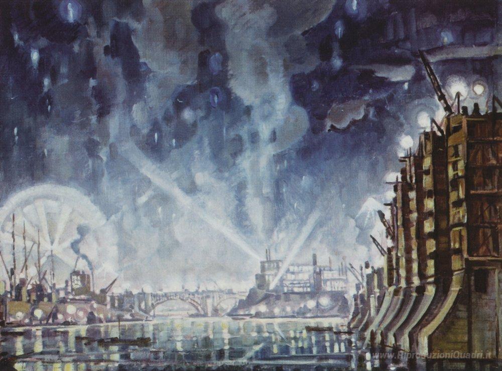 Ti offriamo una riproduzione artigianale su tela dell'opera famosa 'Dnieprostroy' di Konstantin Bogaevsky, dal Museo delle Riproduzioni.
