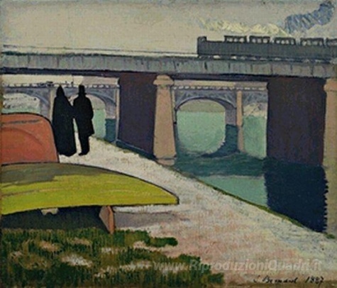 Ti offriamo una riproduzione artigianale su tela dell'opera famosa 'Ferro Ponti a Asnières' di Emile Bernard, dal Museo delle Riproduzioni.