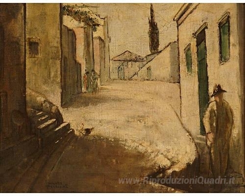 Ti offriamo una riproduzione artigianale su tela dell'opera famosa 'Figure su una strada' di Theophrastos Triantafyllidis, dal Museo delle Riproduzioni.