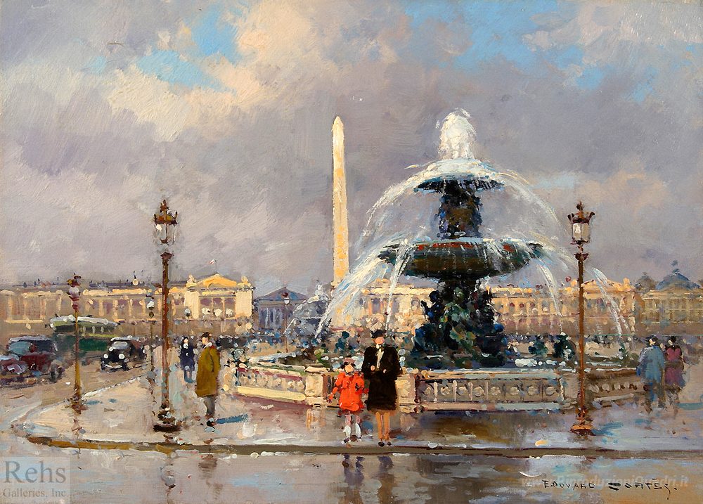 Ti offriamo una riproduzione artigianale su tela dell'opera famosa 'Fontana su Place de la Concorde' di Edouard Cortes, dal Museo delle Riproduzioni.