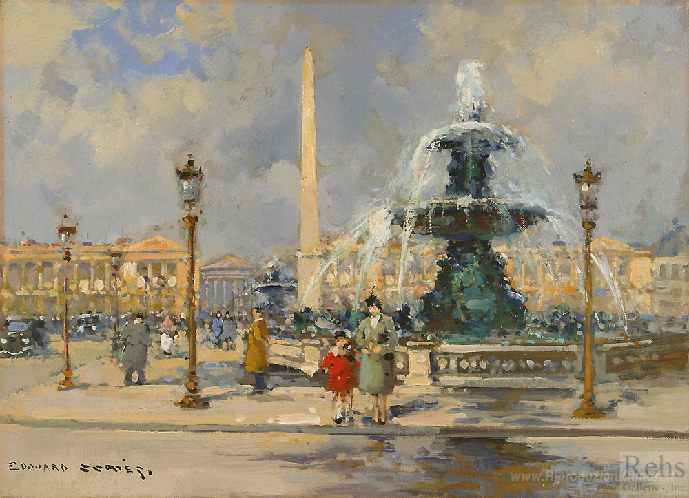 Ti offriamo una riproduzione artigianale su tela dell'opera famosa 'Fontana su Place de la Concorde' di Edouard Cortes, dal Museo delle Riproduzioni.