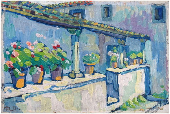 Ti offriamo una riproduzione artigianale su tela dell'opera famosa 'Gerani' di Corneliu Michailescu, dal Museo delle Riproduzioni.