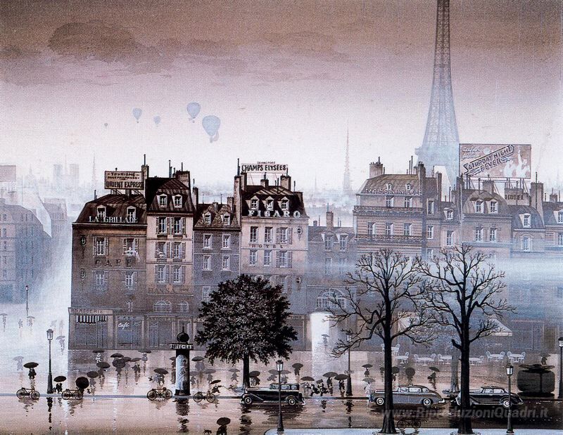 Ti offriamo una riproduzione artigianale su tela dell'opera famosa 'Giornata piovosa' di Hiro Yamagata, dal Museo delle Riproduzioni.