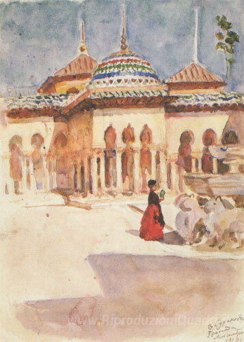 Ti offriamo una riproduzione artigianale su tela dell'opera famosa 'Granada. Alhambra.' di Vasily Surikov, dal Museo delle Riproduzioni.