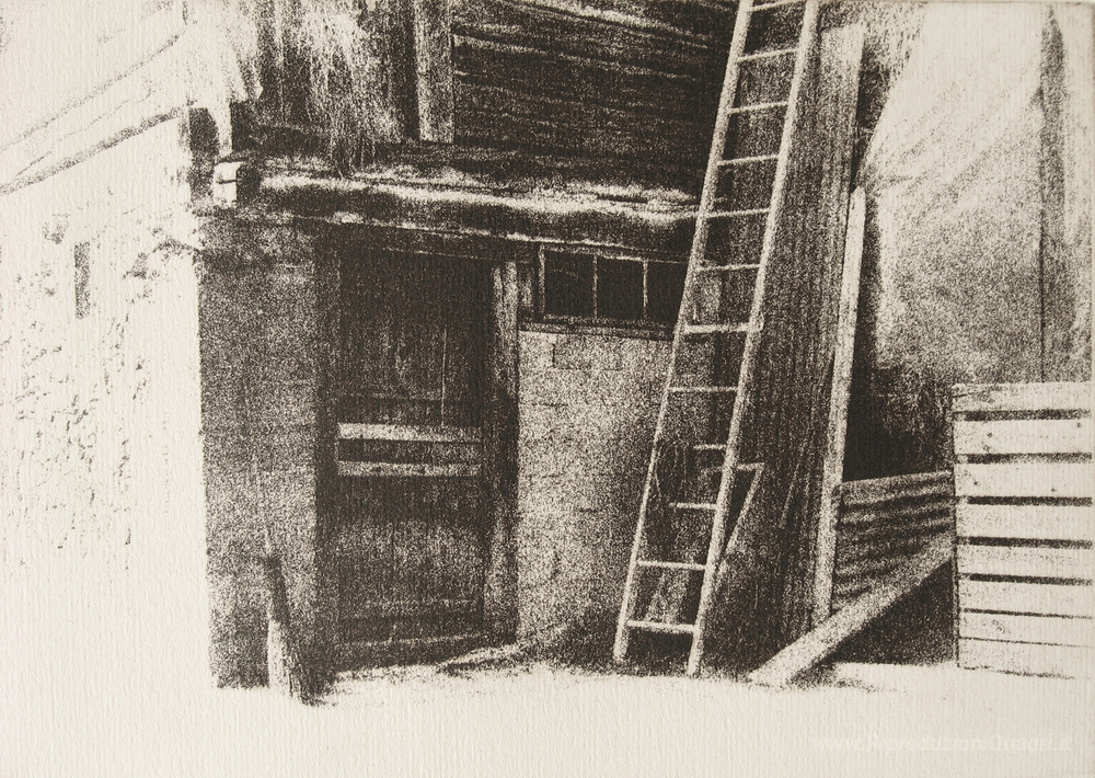 Ti offriamo una riproduzione artigianale su tela dell'opera famosa 'Granaio nel villaggio Aux Posses-Dessous, cantone di Vaud - foto' di Hubertine Heijermans, dal Museo delle Riproduzioni.