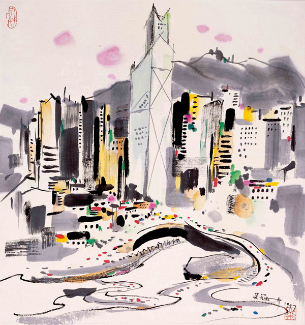 Ti offriamo una riproduzione artigianale su tela dell'opera famosa 'Hong Kong' di Wu Guanzhong, dal Museo delle Riproduzioni.