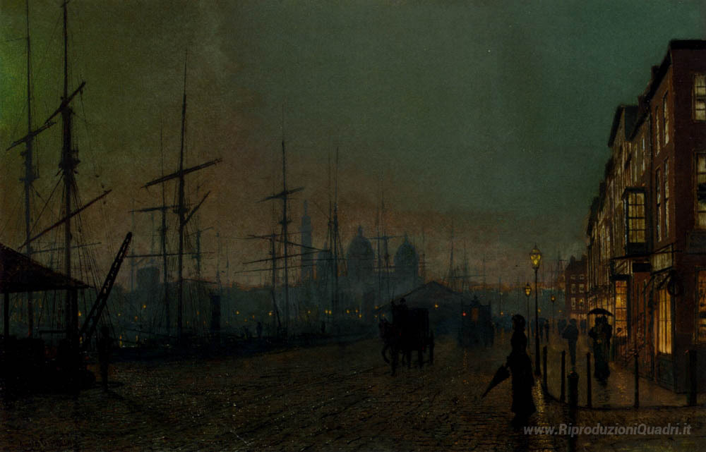 Ti offriamo una riproduzione artigianale su tela dell'opera famosa 'Humber Dockside, Hull' di John Atkinson Grimshaw, dal Museo delle Riproduzioni.