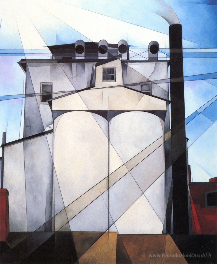 Ti offriamo una riproduzione artigianale su tela dell'opera famosa 'Il mio Egitto' di Charles Demuth, dal Museo delle Riproduzioni.