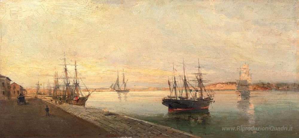 Ti offriamo una riproduzione artigianale su tela dell'opera famosa 'Il porto di Volos' di Konstantinos Volanakis, dal Museo delle Riproduzioni.