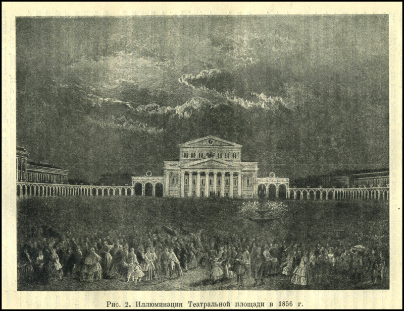 Ti offriamo una riproduzione artigianale su tela dell'opera famosa 'Illuminazione della Piazza del Teatro nel 1856' di Vasily Sadovnikov, dal Museo delle Riproduzioni.