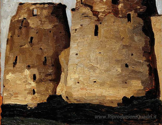 Ti offriamo una riproduzione artigianale su tela dell'opera famosa 'Izborsk. Torri.' di Nicholas Roerich, dal Museo delle Riproduzioni.